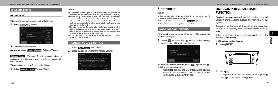 PHONE OPERATION (HANDS-FREE SYSTEM FOR CELLULAR PHONES)