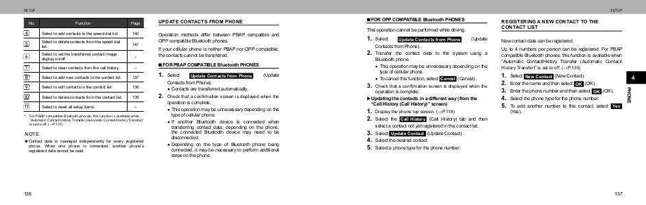 FOR PBAP COMPATIBLE Bluetooth PHONES
