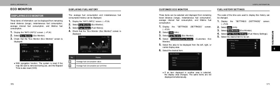 travel distance (range), instantaneous fuel consumption,