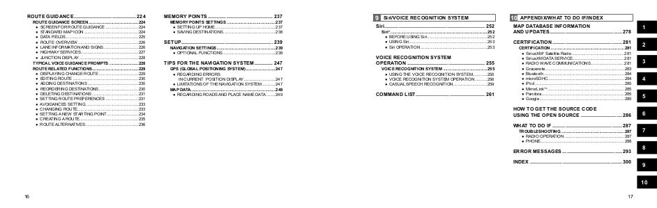 TIPS FOR THE NAVIGATION SYSTEM ............. 247