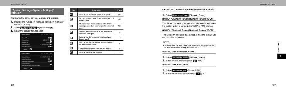 Bluetooth® SETTINGS