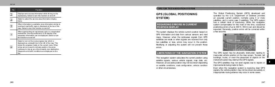 Displays service area information while driving on the