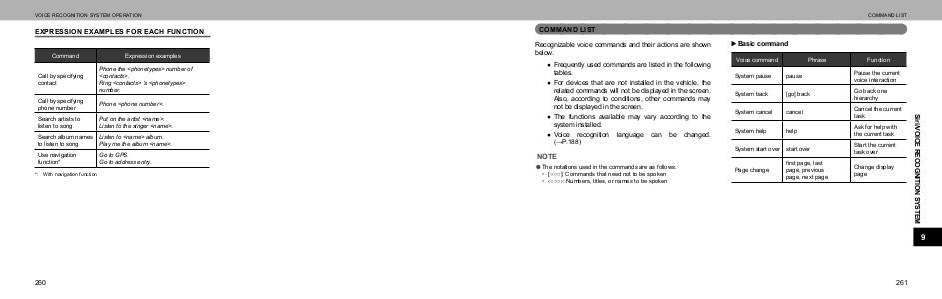 Recognizable voice commands and their actions are shown