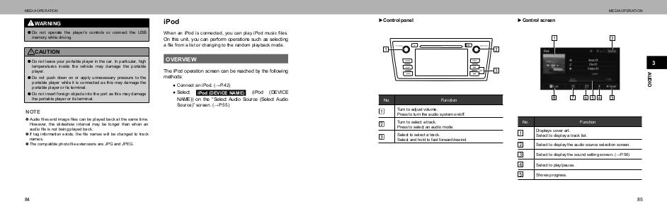 The iPod operation screen can be reached by the following