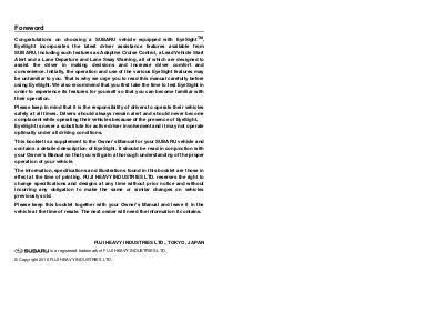 Subaru Legacy Manuals 2017 Legacy EyeSight® Driving Assist System Manual | Page 2