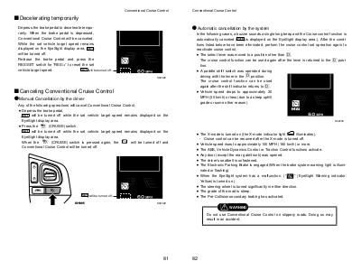 is displayed on the EyeSight display area.). After the conditions listed below have been eliminated, perform the cruise control set operation again to