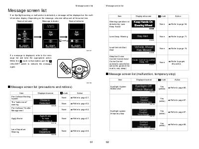 If an EyeSight warning or malfunction is detected, a message will be displayed on the multi