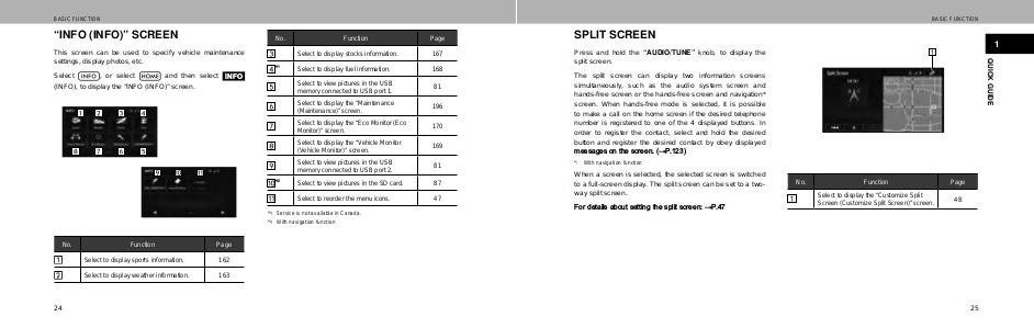 The split screen can display two information screens