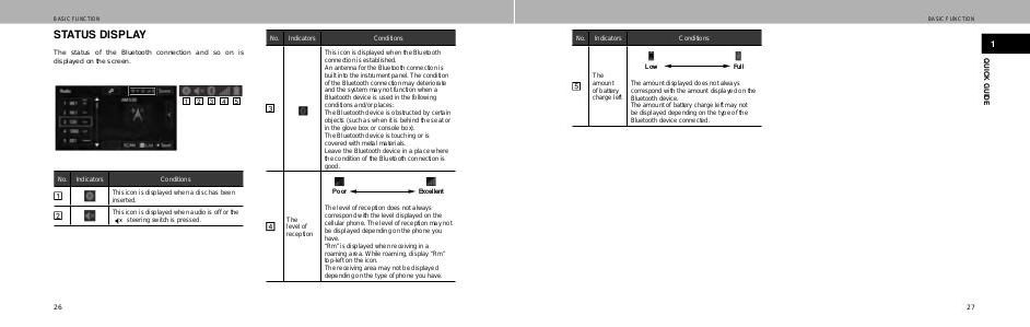 The status of the Bluetooth connection and so on is