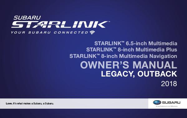 STARLINK ™ 6.5-inch Multimedia STARLINK ™ 8-inch Multimedia Plus STARLINK ™ 8-inch Multimedia Navigation OWNER’S MANUAL LEGACY, OUTBACK 2018 Love. It’s what makes a Subaru, a Subaru.