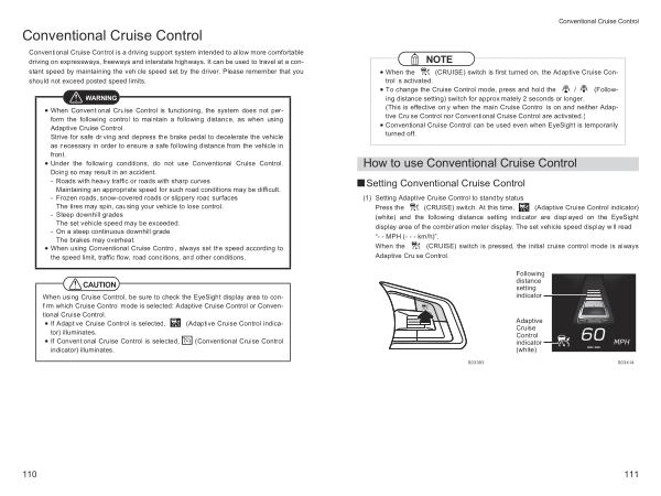 • Conventional Cruise Control can be used even when EyeSight is temporarily turned off .
