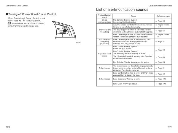 ( Conventional Cruise Control indicator ) turns off on the EyeSight display area .