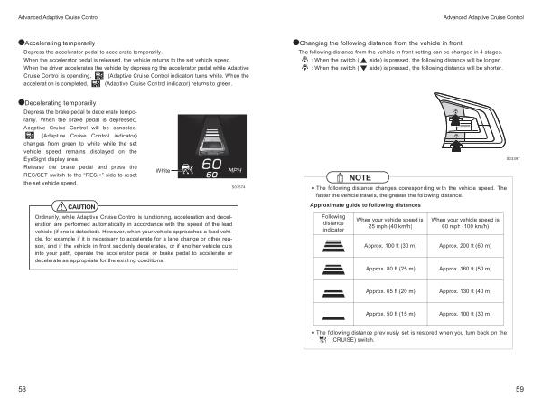 Ordinarily , while Adaptive Cruise Control is functioning , acceleration and deceleration are performed automatically in accordance with the speed of the lead vehicle ( if one is detected ). However , when your vehicle approaches a lead vehicle , for example if it is necessary to accelerate for a lane change or other reason , and if the vehicle in front suddenly decelerates , or if another vehicle cuts into your path , operate the accelerator pedal or brake pedal to accelerate or decelerate as appropriate for the existing conditions .