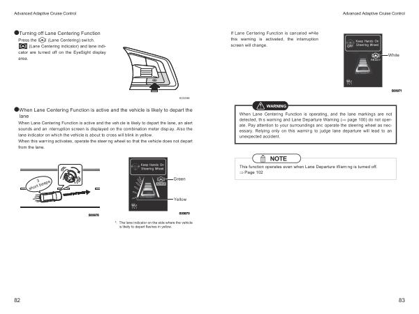 ( Lane Centering indicator ) and lane indicator are turned off on the EyeSight display area .
