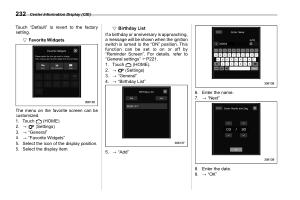 If a birthday or anniversary is approaching , a message will be shown when the ignition switch is turned to the “ ON ” position . This function can be set to on or off by “ Reminder Screen ”. For details , refer to “ General settings ” FP221 .