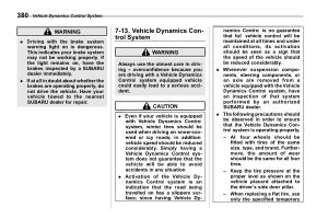 . Whenever suspension components , steering components , or an axle are removed from a vehicle equipped with the Vehicle Dynamics Control system , have an inspection of that system performed by an authorized SUBARU dealer .