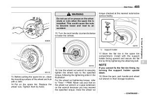 17 . Store the flat tire in the spare tire compartment . Install with the support holder facing upward and secure the flat tire by firmly tightening the attaching bolt .