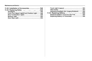 Trunk Light ( Legacy ) .......................................... 553 Other Bulbs ....................................................... 553 Adjusting Headlight Aim ( Legacy / Outback ) ......... 554