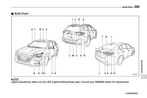 Lights indicated by letters are the LED ( Light Emitting Diode ) type . Consult your SUBARU dealer for replacement .