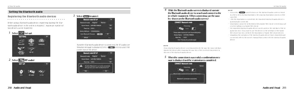 audio function. If you want to use the device on the interface of the handsfree phone function, perform the registration of hands-free phone devices.