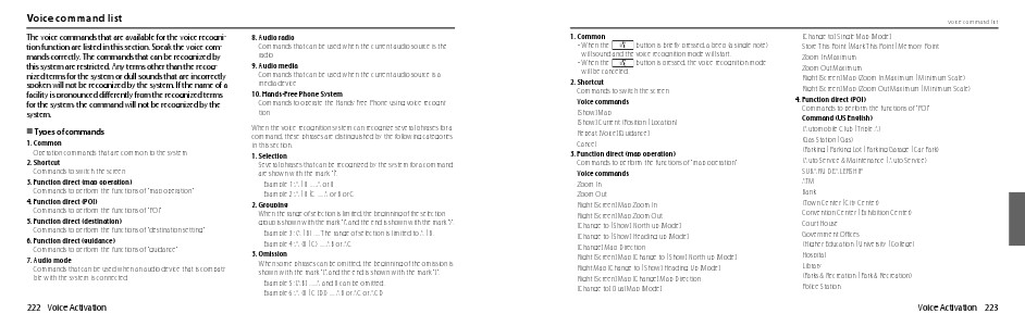 Voice command list