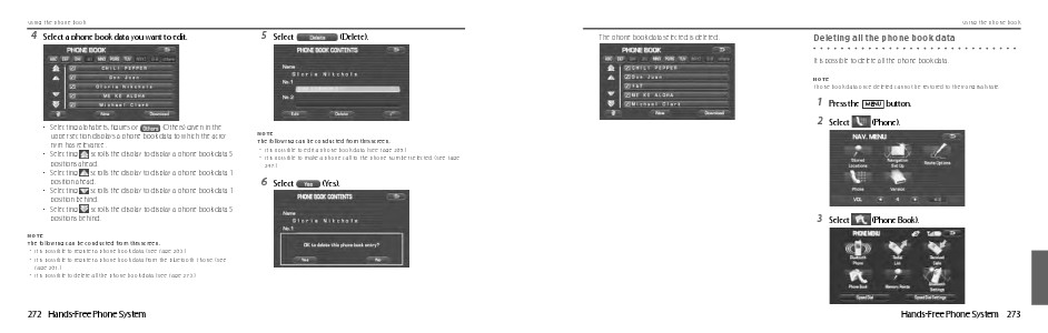 • It is possible to delete all the phone book data. (See Page 273.)