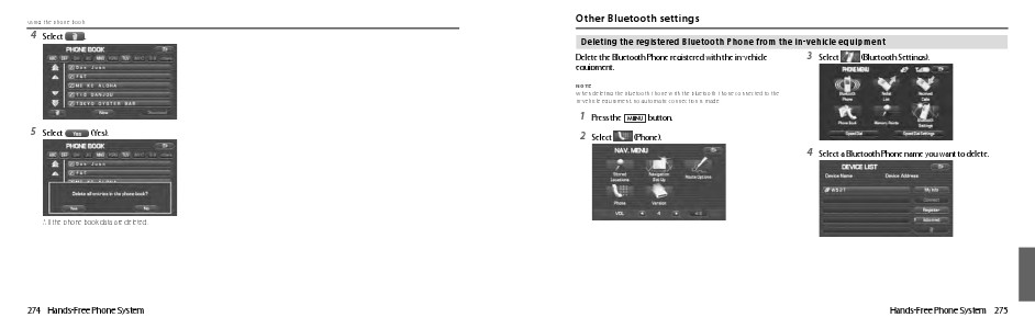 Deleting the registered Bluetooth Phone from the in-vehicle equipment