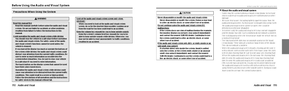 Before Using the Audio and Visual System