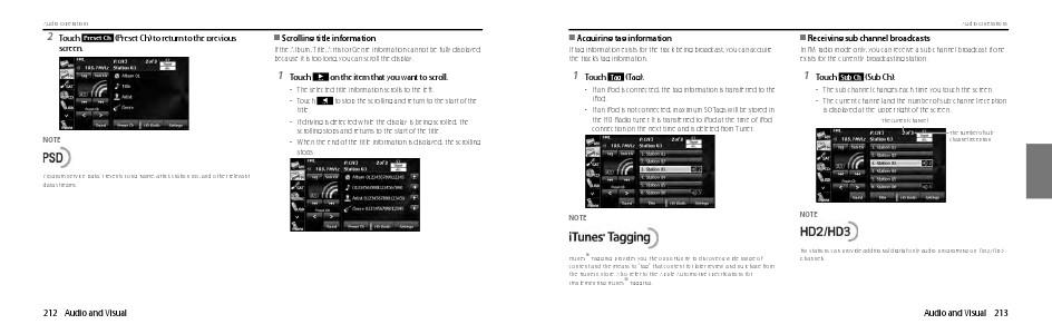 Program Service Data: Presents song name, artist, station IDs, and other relevant