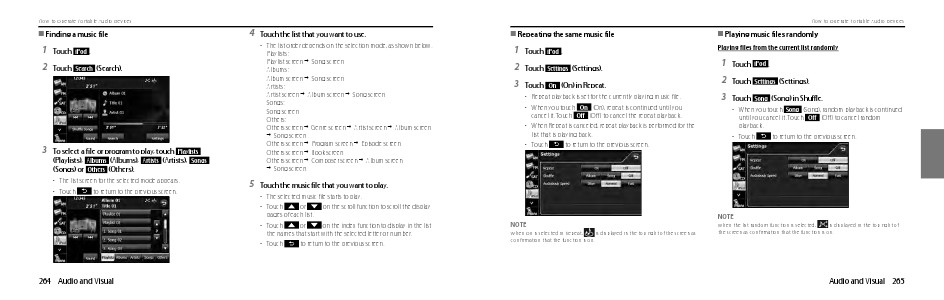 • When you touch Song (Song), random playback is continued