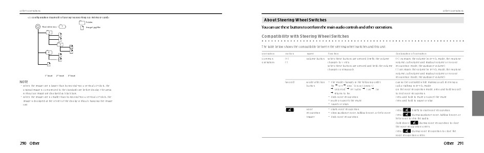 The table below shows the compatibility between the steering wheel switches and this unit.