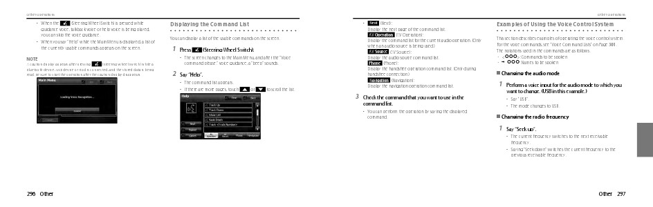 For the voice commands, see “Voice Command Lists” on Page 301.