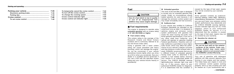 & Fuel requirements