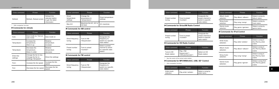 Commands for MP3/WMA/AAC, USB, SD* Control