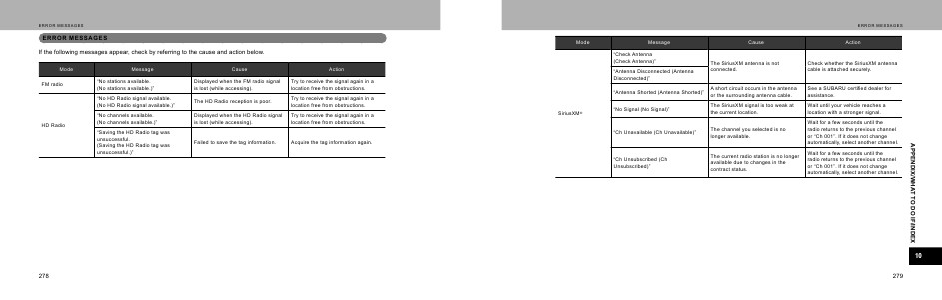If the following messages appear, check by referring to the cause and action below.