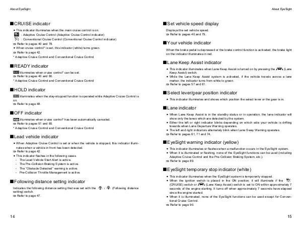 Subaru Outback Manuals 2018 Outback EyeSight Driving Assist System Manual | Seite 18