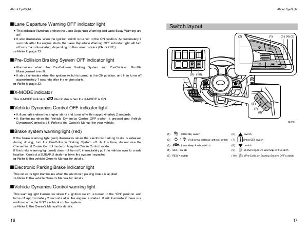 Subaru Outback Manuals 2018 Outback EyeSight Driving Assist System Manual | Page 21