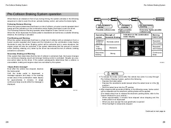 Pre-Collision Braking System operation