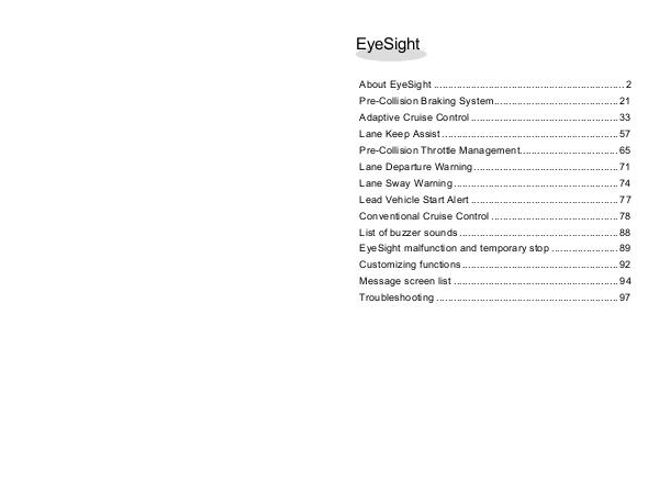 Subaru Outback Manuals 2018 Outback EyeSight Driving Assist System Manual | Page 5