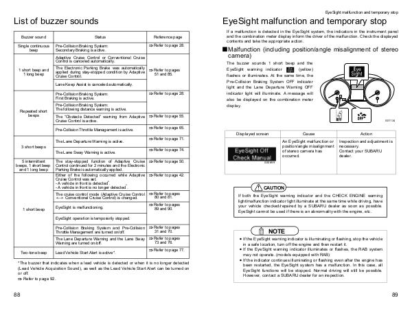 EyeSight malfunction and temporary stop