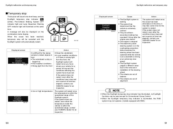 EyeSight malfunction and temporary stop