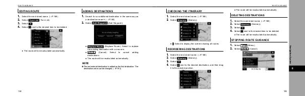llThe last entered destination is added as the first destination. The destination order can be changed.( →P. 193)