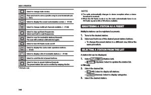 Select to display a list of receivable stations . ( �P . 144 ) Select to scroll the list of preset buttons .