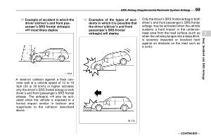 ! Examples of the types of accidents in which it is possible that the driver ’ s / driver ’ s and front passenger ’ s SRS frontal airbag ( s ) will deploy s01ah021102 |