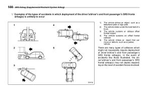 ! Examples of the types of accidents in which deployment of the driver ’ s / driver ’ s and front passenger ’ s SRS frontal airbag ( s ) is unlikely to occur