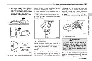 ! Examples of the types of accidents in which the driver ’ s / driver ’ s and front passenger ’ s SRS frontal airbag ( s ) are not designed to deploy in most cases s01ah021104 |