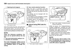 While all doors ( for Outback / Subaru Outback Wilderness , including the rear gate ) are locked , you can unlock the doors ( including rear gate ) without a key by performing the following procedure .