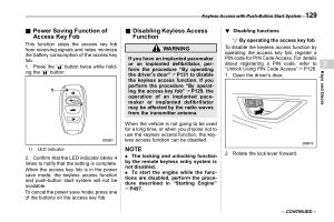 . The locking and unlocking function by the remote keyless entry system is not disabled . . To start the engine while the functions are disabled , perform the procedure described in “ Starting Engine ” FP497 .