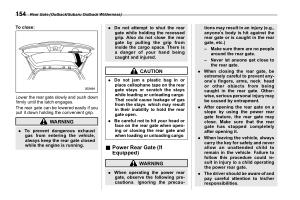 . When leaving the vehicle , always carry the key for safety and never allow an unattended child to remain in the vehicle . Failure to follow this procedure could result in injury to a child operating the power rear gate .