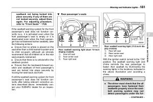 With the ignition switch turned to the “ ON ” position , the seatbelt warning light and chime reminds the rear passenger to fasten their seatbelt by illuminating the warning lights in the locations indicated in the above illustration and sounding a chime .
